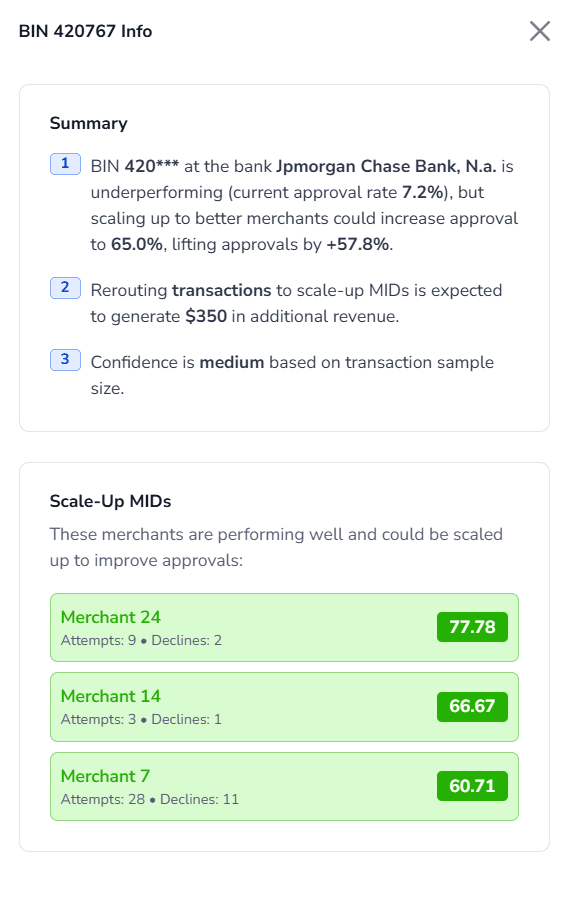 The BIN analysis tools alone paid for the entire platform. We’ve found routing issues, issuer quirks, and approval dips we never would have seen.